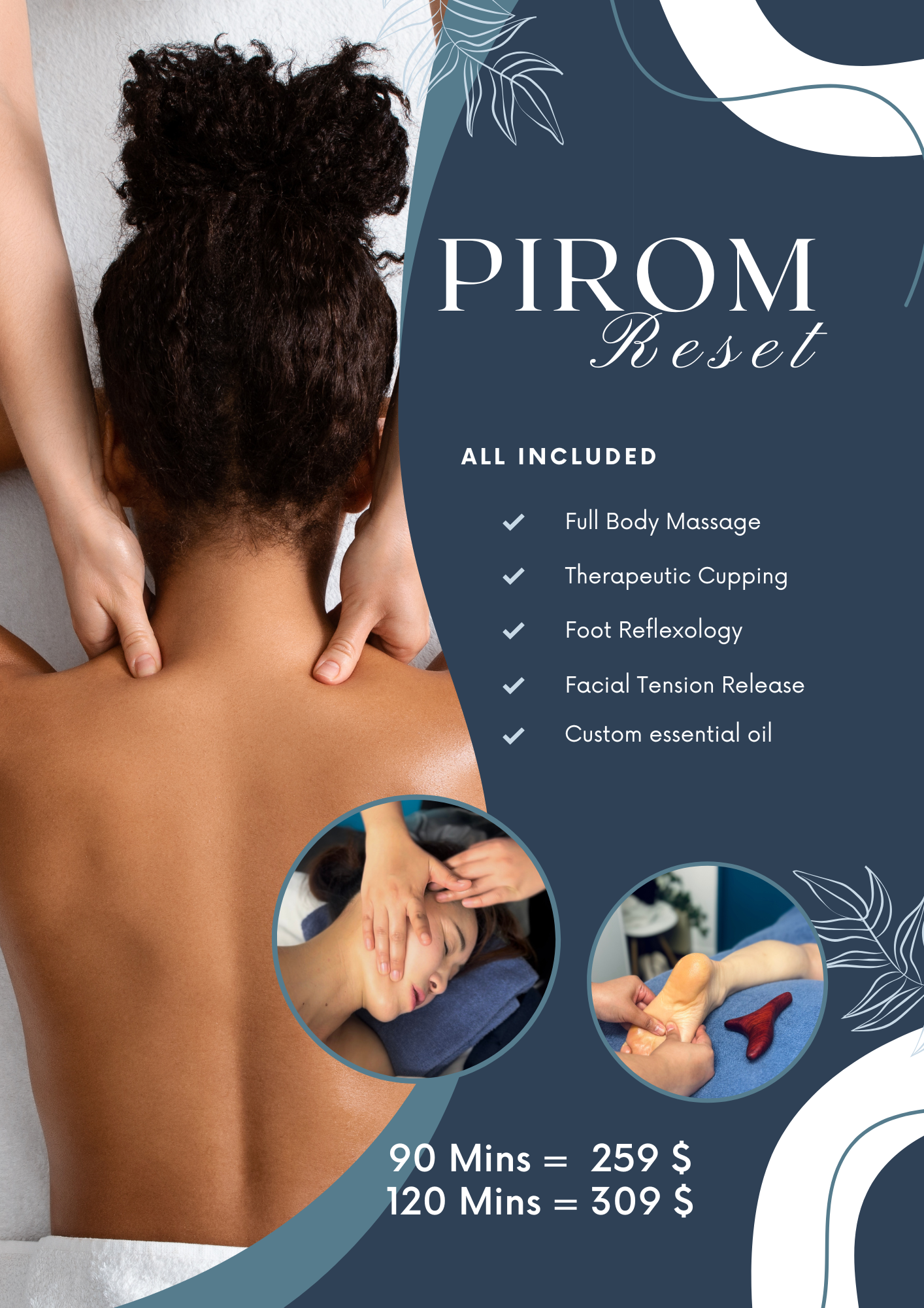 At Pirom, therapeutic massage is never one-size-fits-all. Every client’s body tells a different story, and each session is adapted to those needs. Techniques may include trigger point release, myofascial release, mobilization, PNF stretching, or a blend of approaches — always chosen to suit the individual. The goal is to create effective relief, improve movement, and bring balance back to the body.